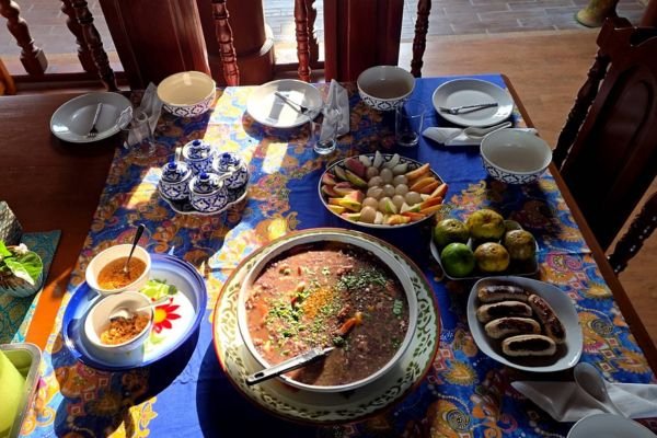 - อาหารว่าง / อาหารกลางวัน–อาหารเย็น, ผลไม้ตามฤดูกาล